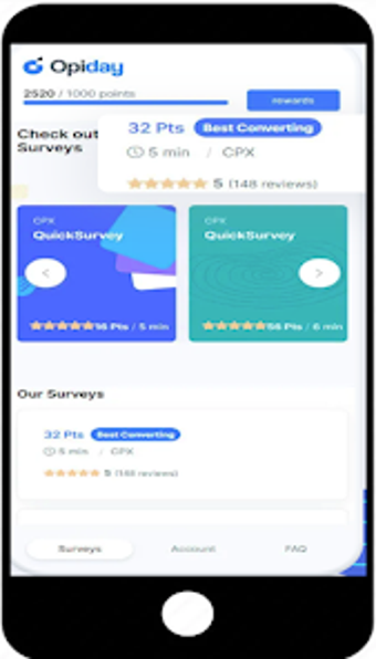 Opiday Survey Rewards ist eine Android-App, die es Nutzern ermöglicht, durch das Ausfüllen von Umfragen Punkte zu sammeln. Diese Punkte können dann gegen verschiedene Geschenkkarten eingelöst werden, darunter beliebte Optionen wie Amazon, Paypal und Visa. Die App ist kostenlos und bietet eine benutzerfreundliche Oberfläche, die es einfach macht, täglich Umfragen zu beantworten und Punkte zu sammeln. Die Belohnungen sind ab 1000 Punkten verfügbar, was etwa 10 US-Dollar entspricht.